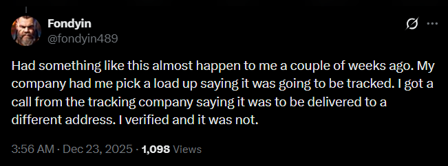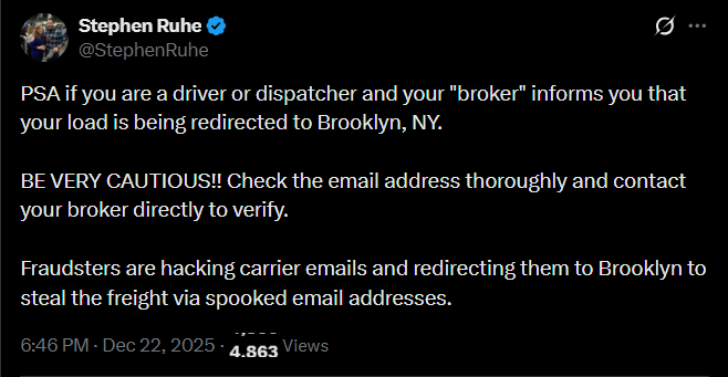 If you read nothing else today or tomorrow, please take a moment to read this. This is currently one of the most common freight-theft tactics. And it seems to be rapidly increasing.
