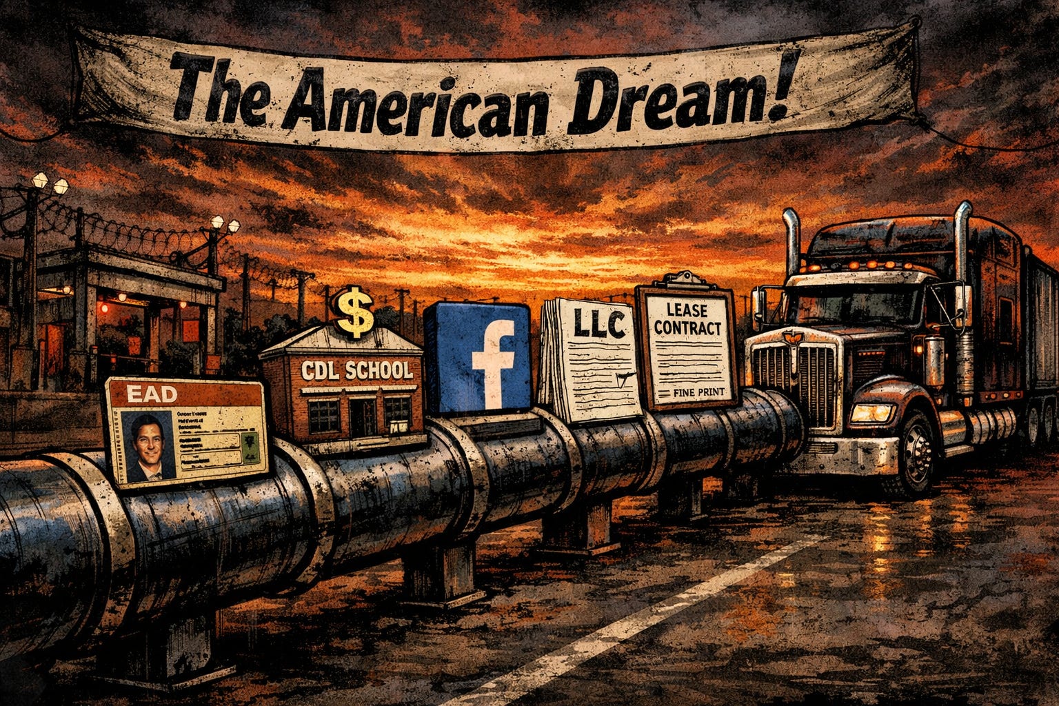 The American trucker doesn’t win. He’s spent decades building a career and is now competing against rates propped up by federally subsidized training, predatory leases, and a market that loves cheap rates.