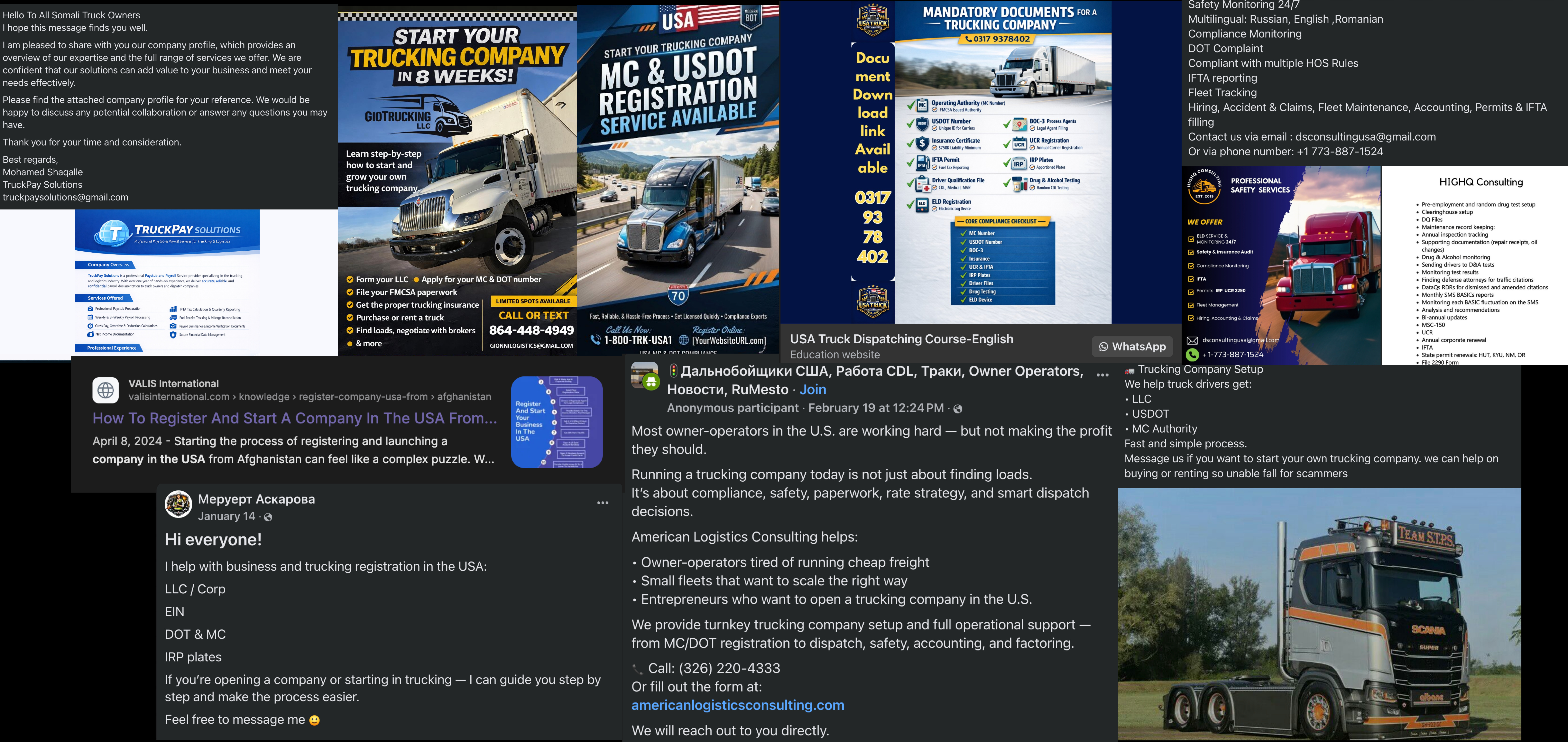 Inside the Somali, Haitian, Ethiopian, Central American, Central Asian, Afghan, and other immigrant trucking social media communities, you will find posts offering full-service trucking company setups. Insurance agents who specialize in new operators and know which carriers will write a policy for a driver with no history. People who walk you through the LLC filing and the USDOT registration process.