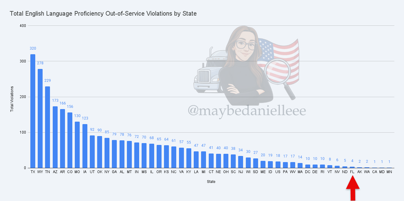 It isn’t just three states falling short. There are many more that have yet to issue any meaningful out-of-service violations. Today marks day 65 since June 25, 2025, the official start of ELP enforcement. During that span, Florida has issued only four violations, and California has issued just ONE, which is absolutely absurd.