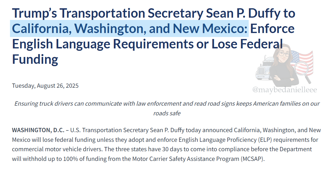 Secretary Duffy called out three states for significant failures in ELP enforcement. Fair. But whatever data was handed to him wasn’t the whole picture.