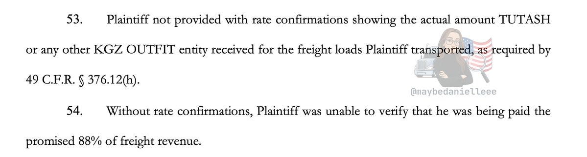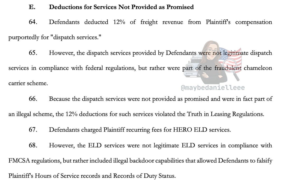 According to the filing, drivers are recruited with promises of a high percentage of revenue, legitimate dispatch services, proper insurance, and compliant logging.
