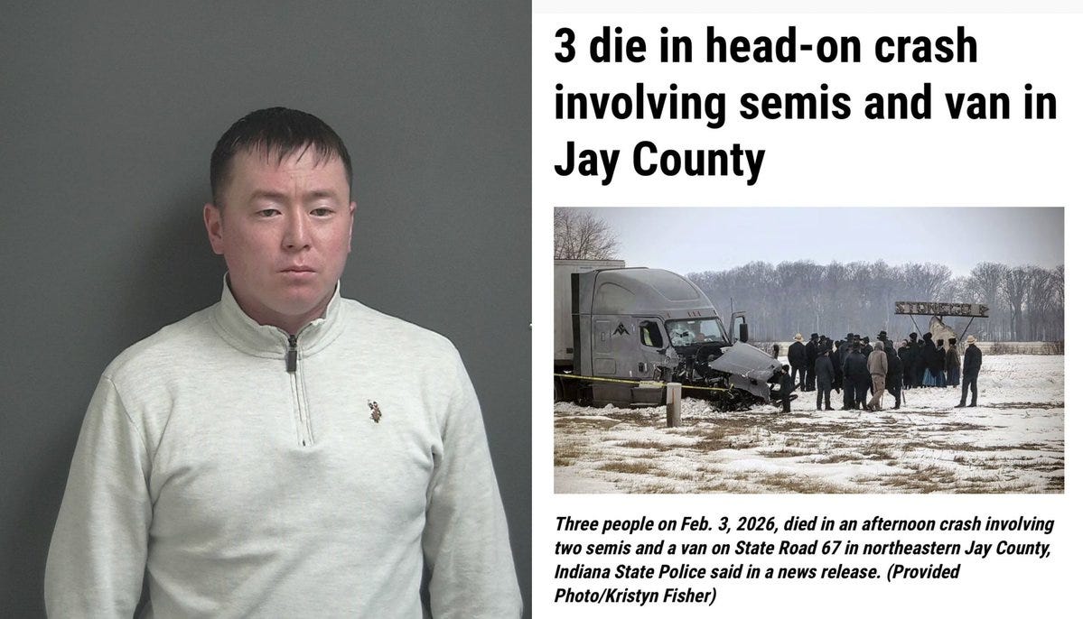 On February 3, 2026, Indiana State Police responded to a fatal crash involving a semi-truck with a triangular logo. The driver, 30-year-old Bekzhan Beishekeev of Philadelphia, PA, swerved to miss another vehicle, rather than braking.